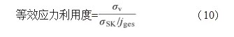 根据FKM规范,静强度的评估准则是计算等效应力的利用度≤1,即工作等效应力与允许的静态应力的比值≤1,如下式所示: