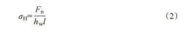 对齿面的接触应力载荷进行校核,防止接触失效。根据单个齿形的法向线载荷Fn、工作齿高hw和连接长度l,得到齿面压应力σH,即: