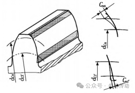 齿轮修形的概念与原理:齿轮修形的理论基础建立在齿轮啮合原理和材料力学原理的基础上,是一种通过改变齿轮齿廓的形状来改善齿轮啮合性能的方法。由于制造误差、安装误差以及工作负荷的变化,齿轮齿面的接触应力分布可能不均匀,从而引发齿轮齿面早期损伤,如点蚀、磨损等问题。调整齿轮齿面的形状可改善齿轮传动性能,减少传动误差,同时延长齿轮的使用寿命。常见的技术手段包括调整齿面形状和修正齿根曲率。通过调整齿面形状,可以实现齿轮传动过程中压力角的优化,从而减小接触应力和摩擦损耗。齿根修形在减小应力集中方面有显著效果,这类方法在航天、汽车等高负荷领域具有广泛的应用前景。常见的齿轮修形方法包括对齿顶和齿廓进行倒角处理、调整齿形、优化齿向以及修改拓扑结构。通过施加倒角来降低噪声是一种行之有效的方法,它消除了齿轮尖锐部分,减轻了应力集中,因而提升了齿轮的啮合平稳性。通常情况下,齿顶倒角尺寸为(0.05~0.1) 倍模数,齿廓的倒角尺寸为(0.1~0.15) 倍模数,倒角的角度通常为45°。 齿形修形方法包括折线修形、圆弧修形、渐变线修形、折线和圆弧组合修形、齿形鼓状修形、修缘修根以及压力角修形。图4为齿形修缘修根示意图,其中,Cαa为渐开线修缘量,dCa为修缘基准直径,dCf为修根启动直径,Cαf为齿根修缘量。