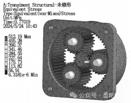 (2)在负载工况下对未修形行星轮系进行瞬态动力学分析,最大应力σmax=512.19MPa, 安全系数为1.66;经齿轮修形后,对行星轮系进行瞬态动力学分析,最大应力σmax=428.15MPa, 安全系数为1.99, 与修形前相比最大应力降低了16.4%。研究结果显示,在特定材料条件下,经过齿轮修形的行星减速器具有更强的承载能力。