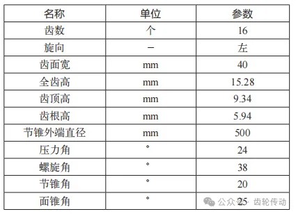 表 1 弧齿锥齿轮参数