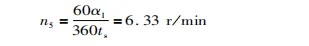 选挡轴:在挡位选择过程中,换挡杆转动角度α1为±l9°,选挡时间ts最大值为0.5s,锥齿轮转速n5为: