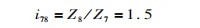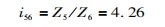 由于结构设计的需要,选择选挡轴上齿轮6齿数Z6为19,锥齿轮齿数Z5为81,传动比i56为: