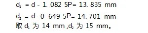 换挡轴:根据换挡轴选择的材料,摩擦因数为0.07。取螺距P为2mm,线数Z为2,螺杆大径d为16mm,计算螺杆的小径d1和中径d2: