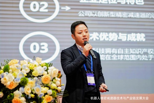 爱磁科技宁波有限公司销售总监余杰先生分享的报告是:《全球首款“零背隙+超高效率”架构精密减速器》,该产品为爱磁科技自主研发,填补了高节拍场景专用减速器的空白,推动高端装备制造业升级。
